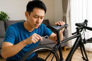- ガタのチェック:ヘッド、BB、ハブなど、回転部分にガタ(遊び)が出ていないか?